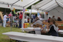Diesmal fand das Kinder- und Sommerfest bereits am 24. Juni, kurz vor den Sommerferien, statt. Eigentlich war alles wieder wie früher. Der Festplatz war geschmückt, die Spielstände liebevoll vorbereitet und von freundlichen Helfern besetzt, fröhliche Kinder am heißen Draht, beim Angeln und bei anderen Geschicklichkeitsspielen. Während die Kinder ihren Spaß hatten, war das Kuchenbuffet bereits umlagert. Und doch, bei genauem Hinsehen, war manches anders als auf dem letzten Sommerfest. Feuerwehr und Pferde vom Reiterhof konnten nicht kommen. Auch hatten einige Gartenfreunde in Ihrer Familienplanung längerfristig bereits anderes vor. Und in letzter Minute sagte auch noch das geplante Highlight, die Schaumkanone ab. So wurde den OrganisatorInnen viel Geduld, Zeit und Improvisationstalent abverlangt. HelferInnen und UnterstützerInnen wurden gesucht und glücklicherweise auch noch rechtzeitig gefunden. Vielen Dank für euren Einsatz. Die zufriedenen Gesichter und lachenden Augen der Kinder waren das beste Dankeschön und das Ausharren vieler bis zum letzten Tanz um Mitternacht spricht eine klare Sprache.
